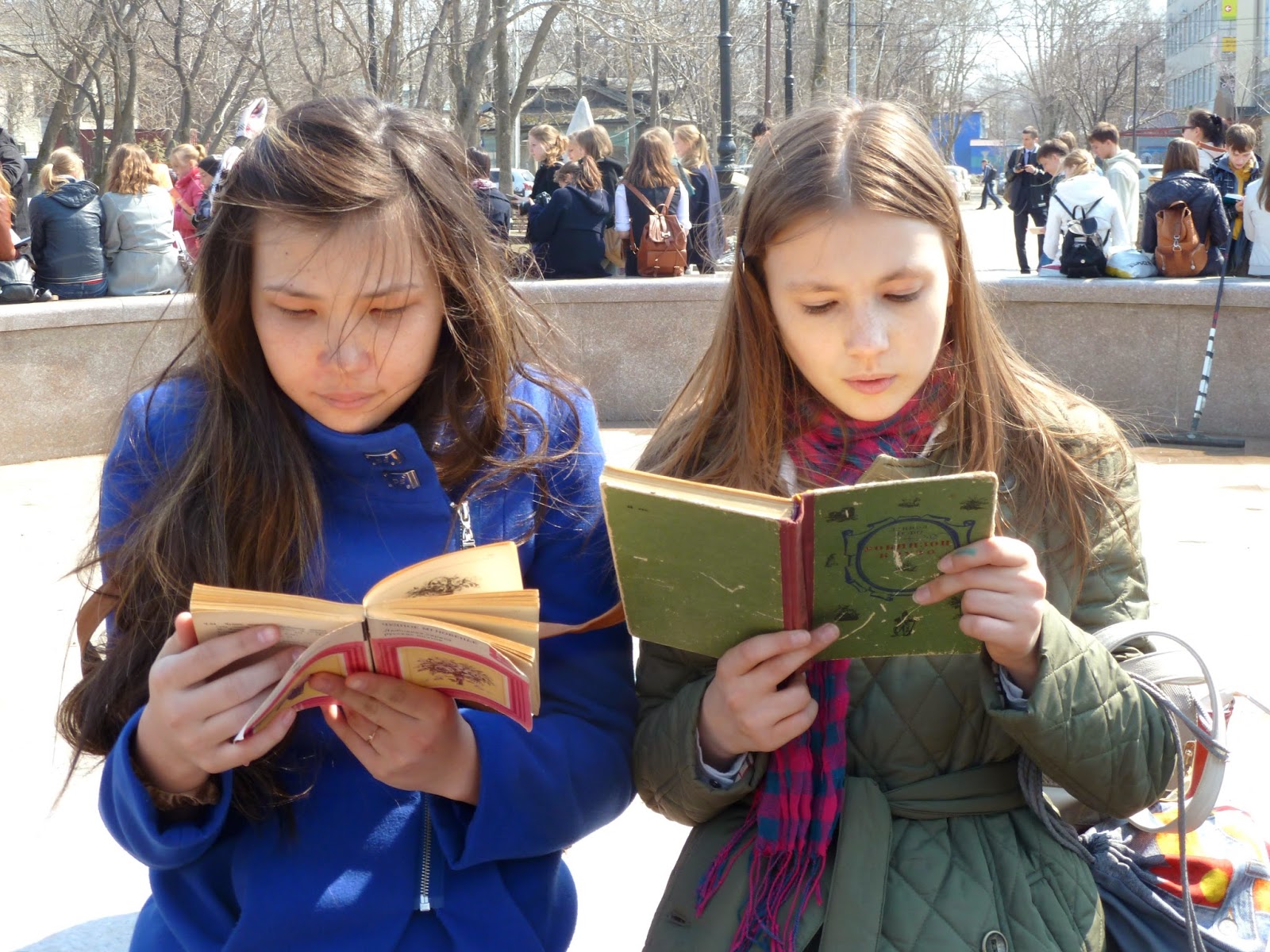 Собравшись в разных сторонах сквера, ребята с нетерпением ждали назначенного времени. После того как пробило ровно 15:00, со всех сторон стали доноситься строчки из произведений знаменитых поэтов и писателей Ахматовой, Есенина, Пушкина, Толстого, Достоевского, Зощенко, Чехова и многих других. Кто-то внимательно вчитывался в каждую букву, кто-то громко декламировал стихи наизусть.